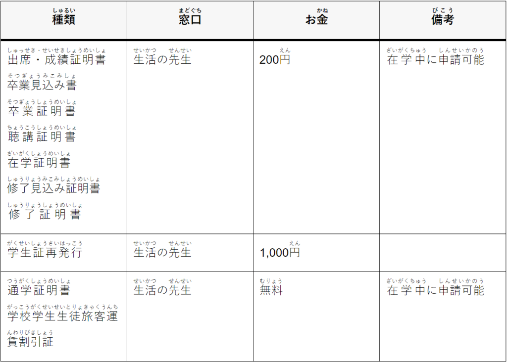 証明書について 2024.09.27 2024.12.26 証明書しょうめいしょの種類しゅるい と 払はらうお金かね 証明書しょうめいしょを作るために、時間じかんが かかります。早はやめに、申請しんせいしてください。 【証明書しょうめいしょ】 【各種願かくしゅねがい届とどけ】 この記事のタイトルとURLをコピーする 保険について 前の記事 ごみのルール 次の記事