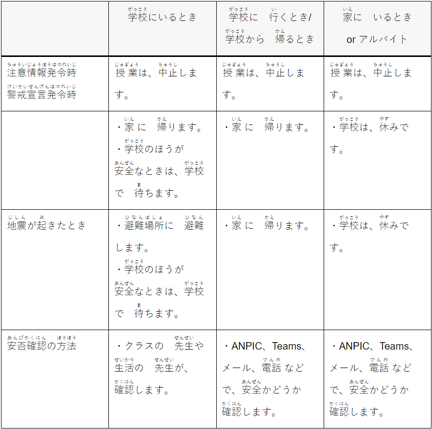 授業が あります。学校が休みのとき、学校から みなさんに 連絡 します。学校からの連絡 を 見てください。