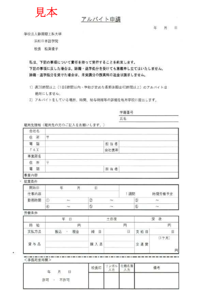 a.アルバイトをしたい人は、学校の先生からアルバイトの申請書をもらってください。