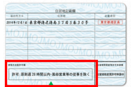 在留カードの裏に「資格外活動許可」のスタンプがあるか確認してください。